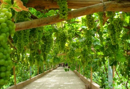 葡萄沟,位于新疆吐鲁番市区东北11公里处,南北长约8公里、东西宽约2公里,是火焰山下的一处峡谷,人口8972人。沟内有布依鲁克河,主要水源为高山融雪,因盛产葡萄而得名,是新疆吐鲁番市的旅游胜地。2007年5月8日,葡萄沟经国家旅游局正式批准为国家AAAAA级旅游景区。